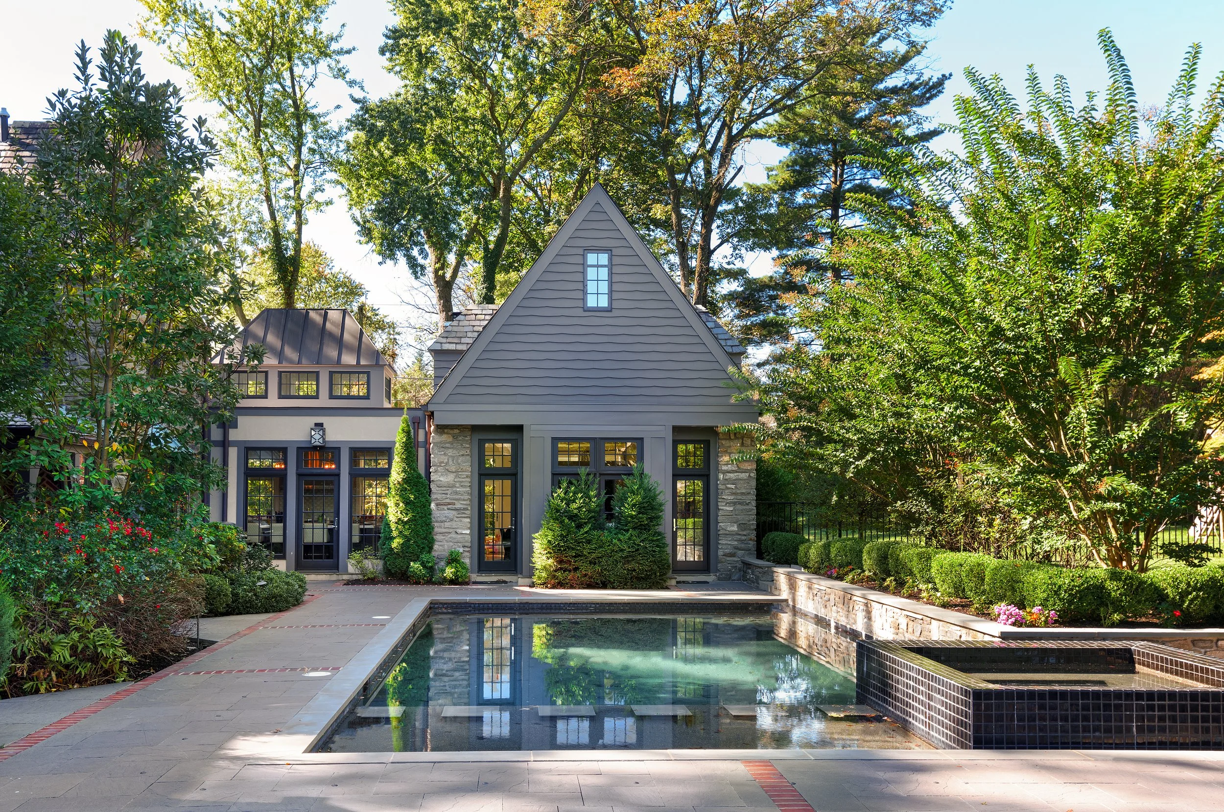 The expansion includes a new kitchen, family room and master bedroom suite plus entirely new bathrooms, butler’s pantry, wine room, full basement renovation, new pool, and landscaping.